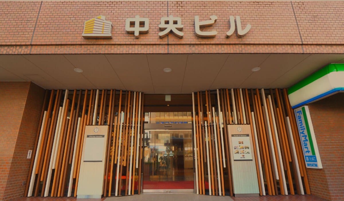 3番目の電停「高見馬場電停」で下車、右斜め前方の茶色の建物です。
